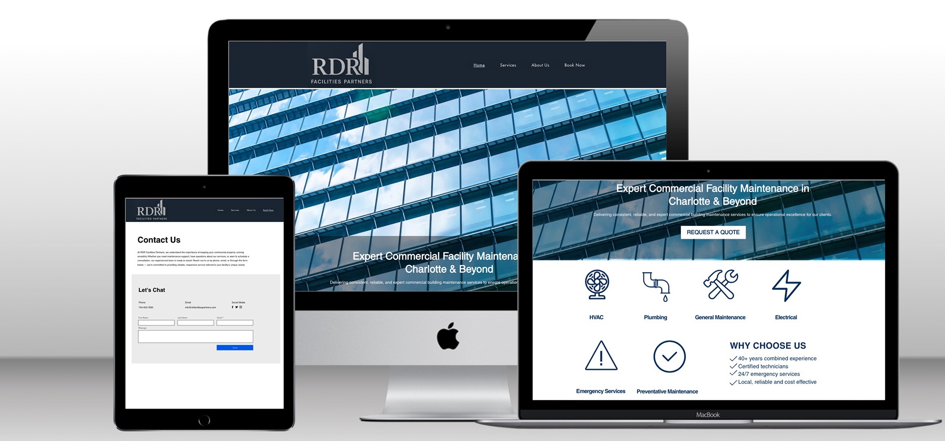 Created a clean, modern website for RDR Facilities Partners, helping them showcase their commercial facilities maintenance services to property management clients. The design emphasizes easy navigation, clear service presentation, and a professional aesthetic, making it simple for visitors to understand offerings and get in touch. View the live site: rdrfacilitiespartners.com